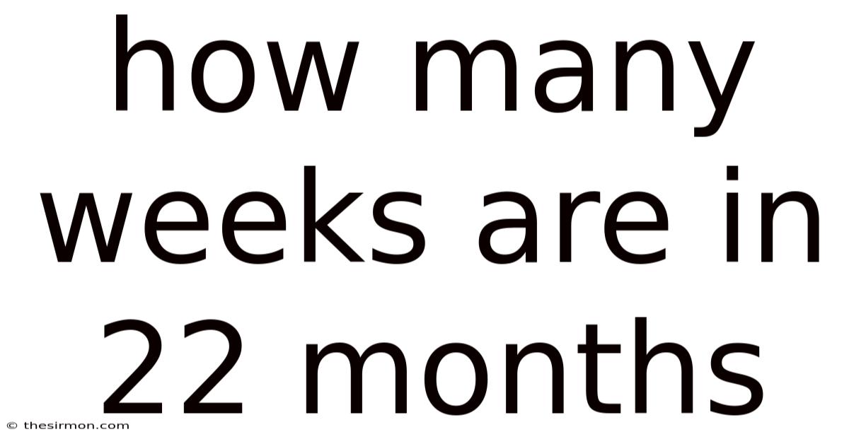 In practical terms, this translates to roughly 95 weeks and 4 days. On top of that, if you’re scheduling events or setting milestones, rounding to 96 weeks is a safe and widely accepted approach. On the flip side, the exact figure can shift slightly depending on which specific months fall within your 22-month window and whether a leap year intersects that period.