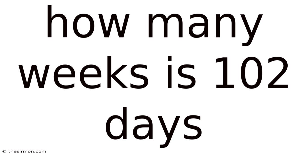 The short version: determining how many weeks are in 102 days is a practical exercise that highlights the importance of precision and organization. Plus, through careful calculation and understanding, we can see that 14 weeks is the exact number, with a few extra days extending into the next week. This knowledge is not just theoretical—it’s a tool that can improve your planning and decision-making. Whether you’re preparing for an exam, managing a project, or simply trying to understand time better, this information is invaluable.