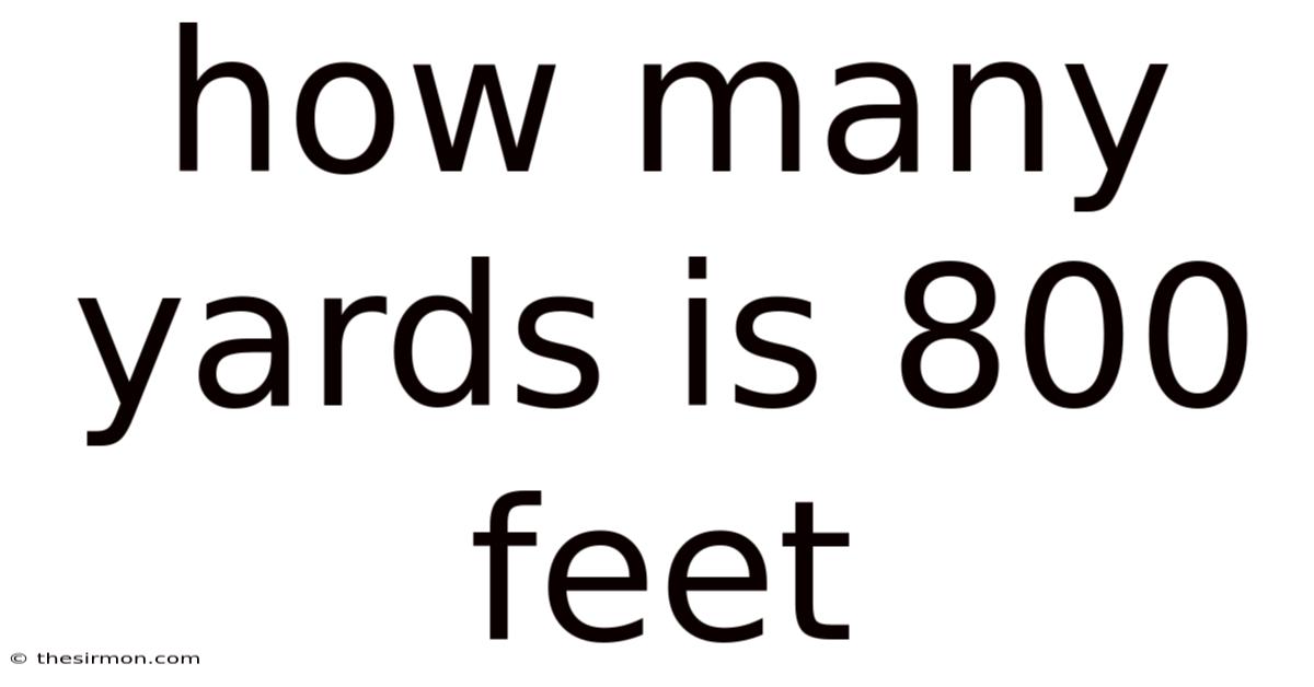 A: 800 feet is exactly 266 yards and 2 feet. (266 * 3 = 798 feet; 800 - 798 = 2 feet remaining). - Q: Is 800 feet greater than 800 yards?