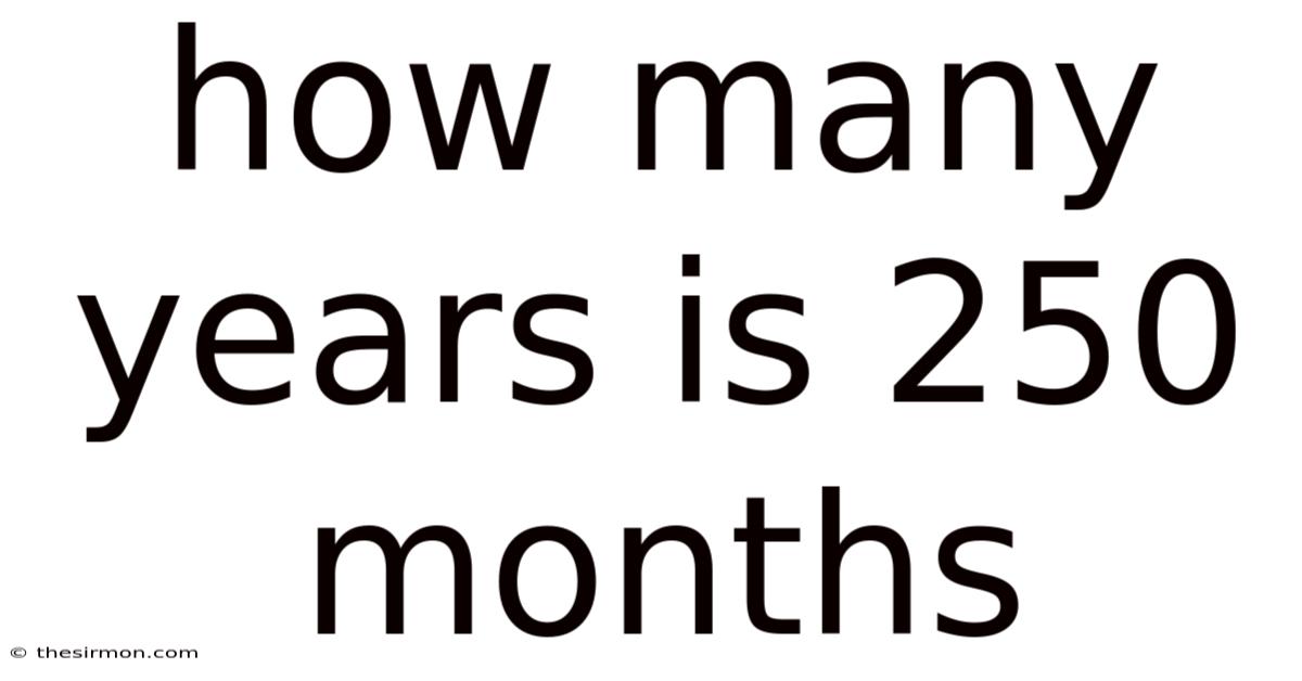 Understanding how many years is 250 months opens the door to clearer planning, better decision-making, and a stronger grasp of long-term timeframes. The exact answer is 20 years and 10 months, or approximately 20.83 years when expressed as a decimal. By mastering this simple conversion, you equip yourself with a practical tool that applies to finance, education, career development, and personal growth Which is the point..