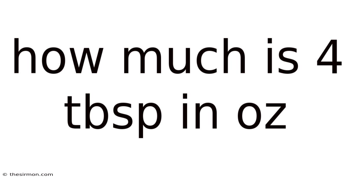 - Therefore, 4 tbsp = 4 × 0.5 fl oz = 2 fl oz