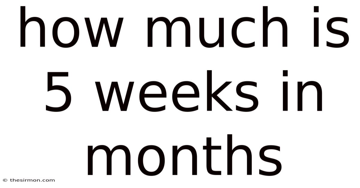 Because of this, 5 weeks is roughly equivalent to 1.15 months, or just over 1 month and 1 week Worth keeping that in mind..