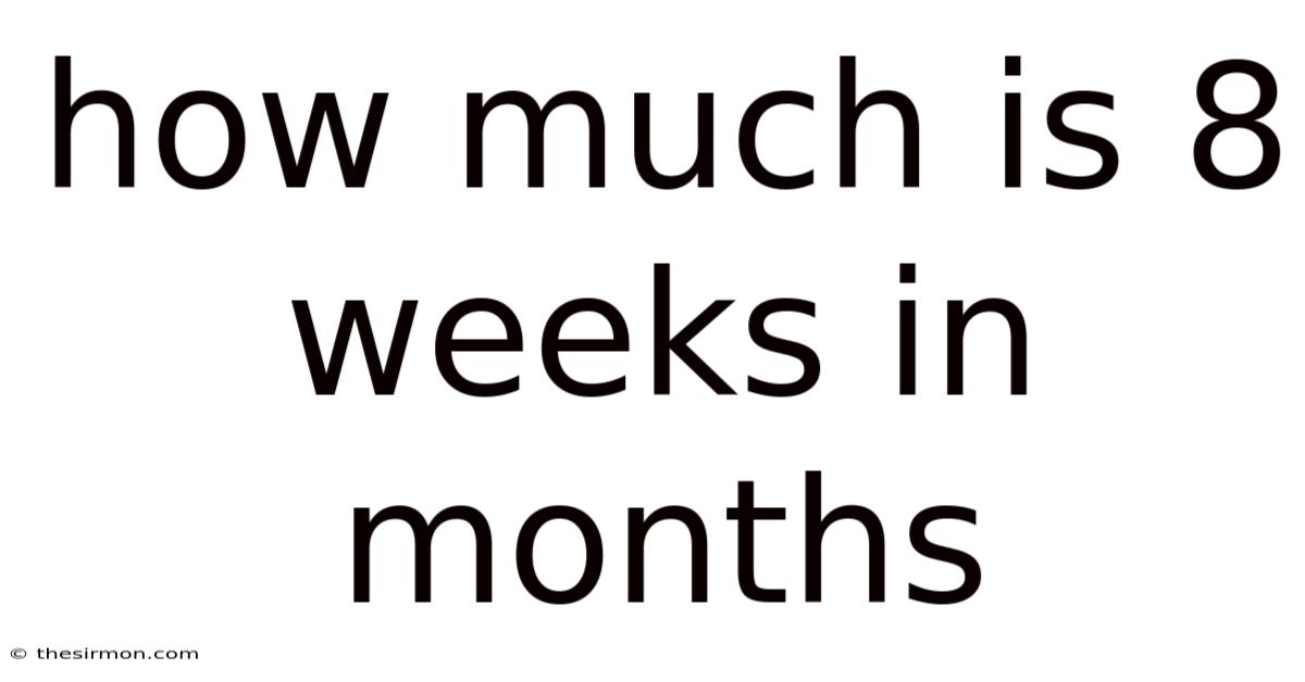 To determine how much 8 weeks equates to months, we need to consider the average length of a month. On average, a month lasts about 4.In practice, 33 weeks. Basically, if we take 8 weeks and divide it by this average, we can estimate how many months that duration would span. This calculation is not only helpful for academic purposes but also for practical planning in various fields Not complicated — just consistent..