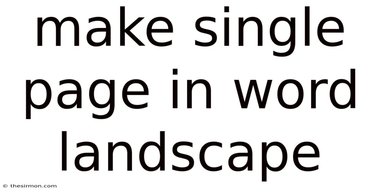 How to Make aSingle Page in Word Landscape: A Step-by-Step Guide