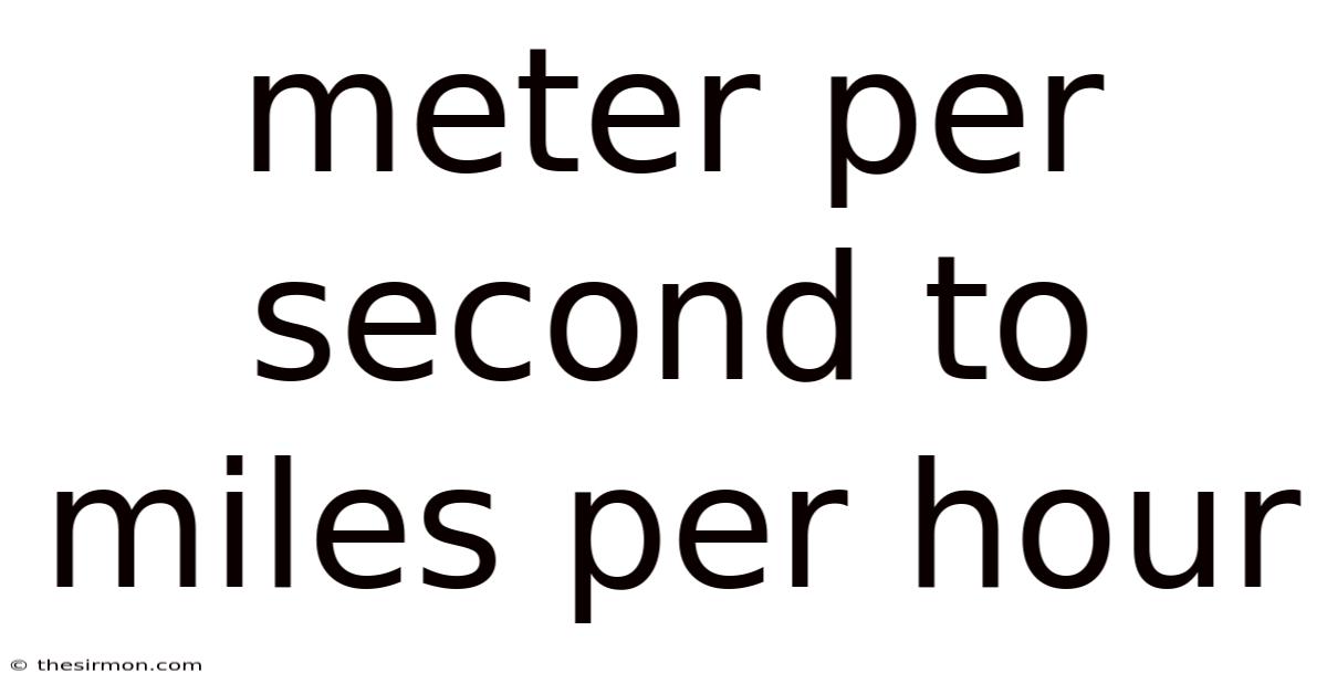 Understanding the relationship between meter per second and miles per hour is a fundamental concept in both science and everyday life. Whether you're navigating a car, planning a long-distance trip, or simply trying to grasp how speed translates across different units, this topic becomes incredibly important. In this article, we will delve deep into the conversion between these two units, explore their significance, and provide practical insights to help you make sense of these measurements It's one of those things that adds up..