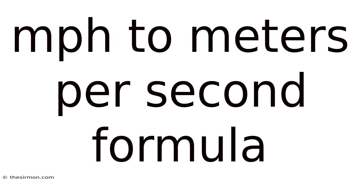 Understanding how to convert miles per hour (mph) to meters per second (m/s) is an essential skill that bridges everyday experience with scientific precision. Now, whether you're a student tackling physics homework, an engineer calibrating equipment, a coach analyzing athlete performance, or simply a curious traveler, this conversion unlocks a standardized language of speed. The core formula is straightforward: to convert mph to m/s, multiply the speed value by 0.44704. Because of that, this seemingly simple calculation connects the imperial system, still common in countries like the United States and the United Kingdom, with the metric system's universal standard for scientific measurement. Mastering this conversion empowers you to interpret speed data accurately across international contexts, from automotive specifications to wind speed reports and athletic benchmarks. This guide will walk you through the formula, its derivation, practical applications, and common questions, ensuring you can perform this conversion with confidence and understand its significance That's the whole idea..