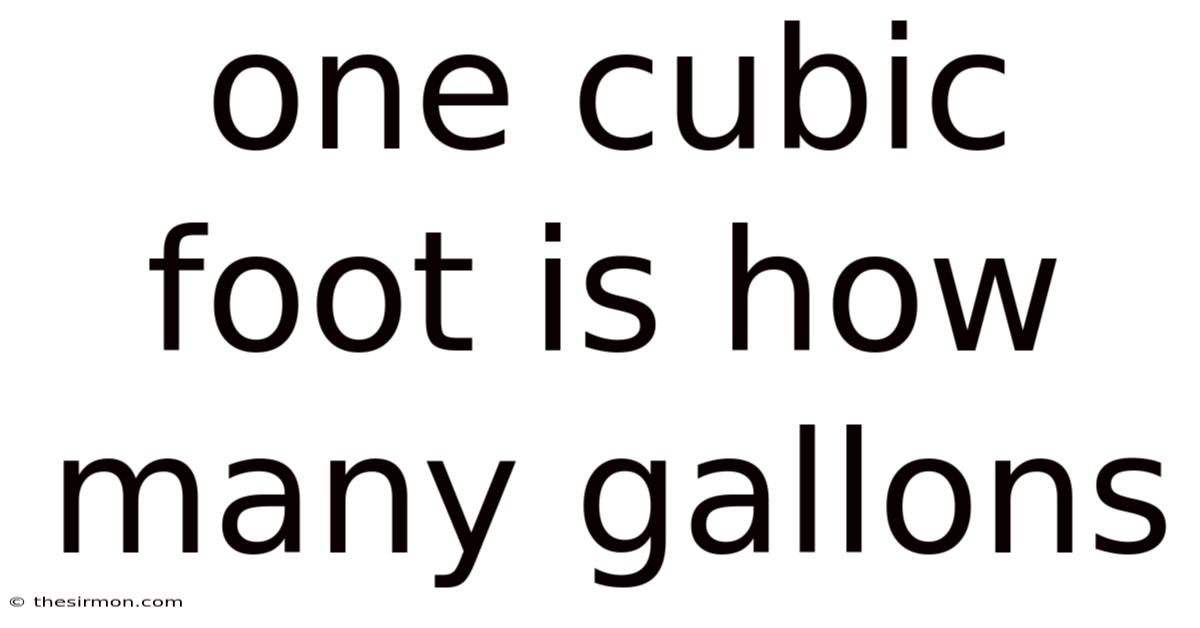 The answer to "one cubic foot is how many gallons" is a fundamental piece of knowledge that serves countless practical purposes across industries and everyday life. One cubic foot equals approximately 7.48 US gallons, a conversion derived from precise mathematical relationships between these two volume measurements. Whether you're a homeowner planning a project, a professional in construction or engineering, or simply someone curious about measurements, understanding this conversion provides valuable practical knowledge Not complicated — just consistent..