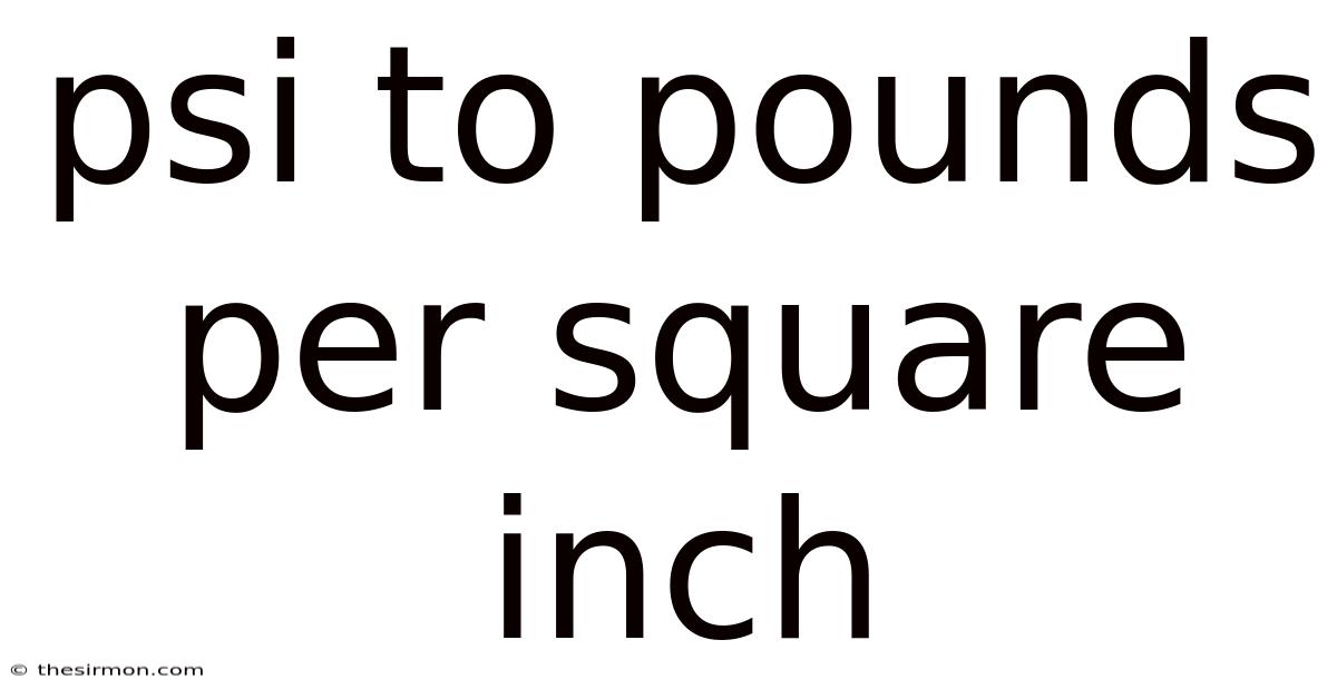 PSI, or pounds per square inch, is a fundamental unit of pressure measurement used across numerous industries and applications. While the terms "psi" and "pounds per square inch" are often used interchangeably, understanding their relationship and practical applications is crucial for professionals and DIY enthusiasts alike. This complete walkthrough will explore everything you need to know about psi to pounds per square inch conversions, measurement techniques, and real-world implementations Still holds up..