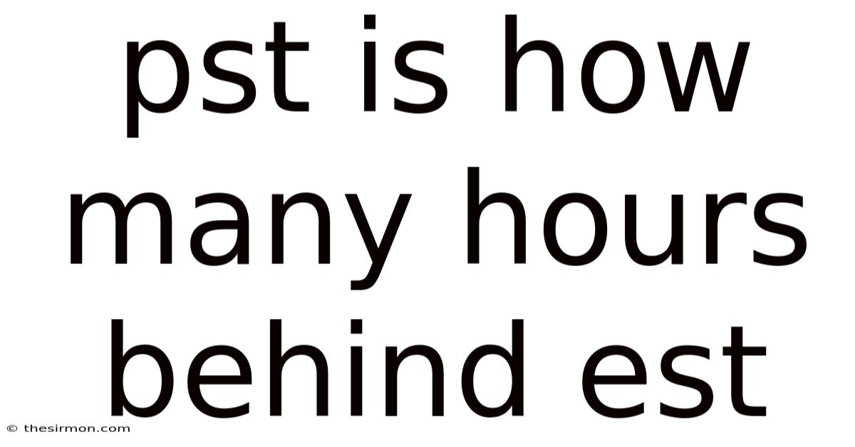 When you schedule a meeting, catch a live broadcast, or plan a cross‑country road trip, the time‑zone difference between Pacific Standard Time (PST) and Eastern Standard Time (EST) becomes a critical detail. Worth adding: understanding that PST is six hours behind EST helps you avoid missed appointments, misplaced conference calls, and confusing travel itineraries. This article breaks down the exact hour gap, explores how daylight‑saving changes affect the relationship, and offers practical tips for converting times accurately across the two zones.