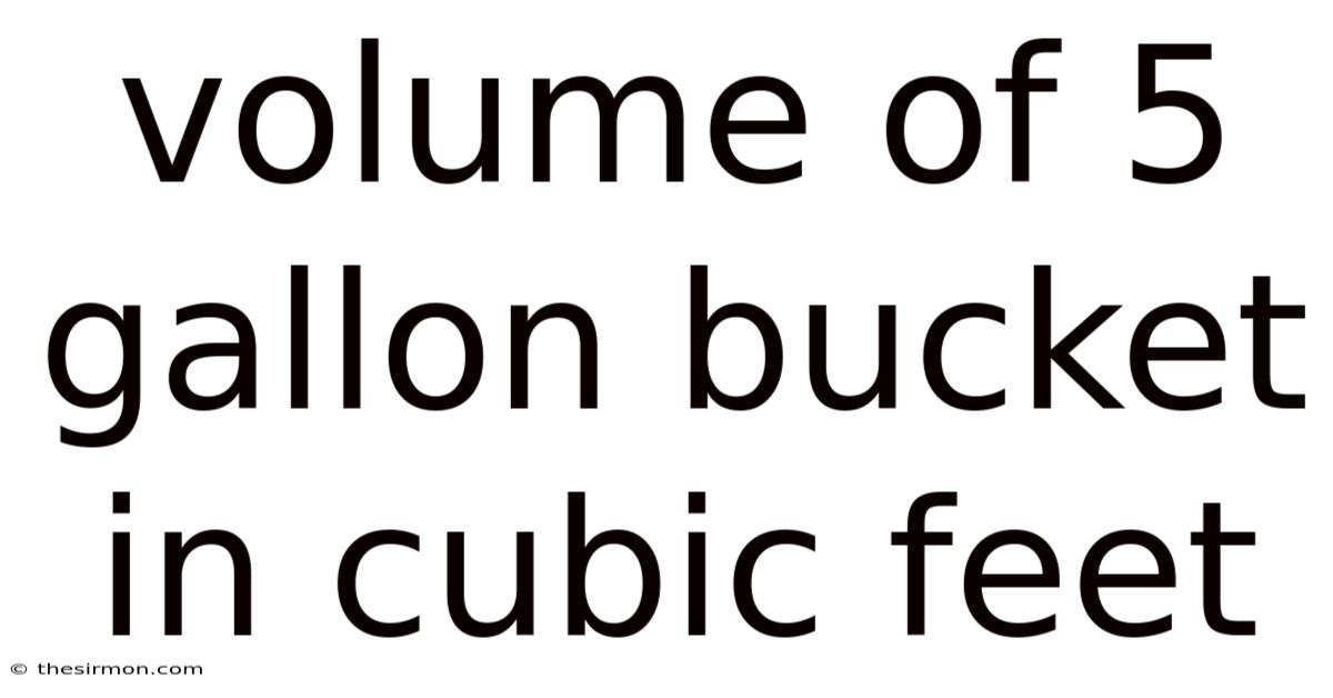 A 5-gallon bucket is a common household item used for various purposes, from storing liquids to carrying tools. Practically speaking, understanding its volume in cubic feet can be useful for projects involving measurements, conversions, or calculations. This article explores the volume of a 5-gallon bucket in cubic feet, its practical applications, and how to calculate it And that's really what it comes down to..