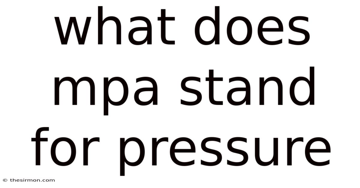 The phrase what does MPA stand for pressure is frequently searched by professionals seeking quick clarification. MPA stands for megapascals, a unit of pressure widely used in scientific and engineering disciplines. Understanding this term is essential for interpreting material strength data, geological stress measurements, and industrial process specifications Simple, but easy to overlook..