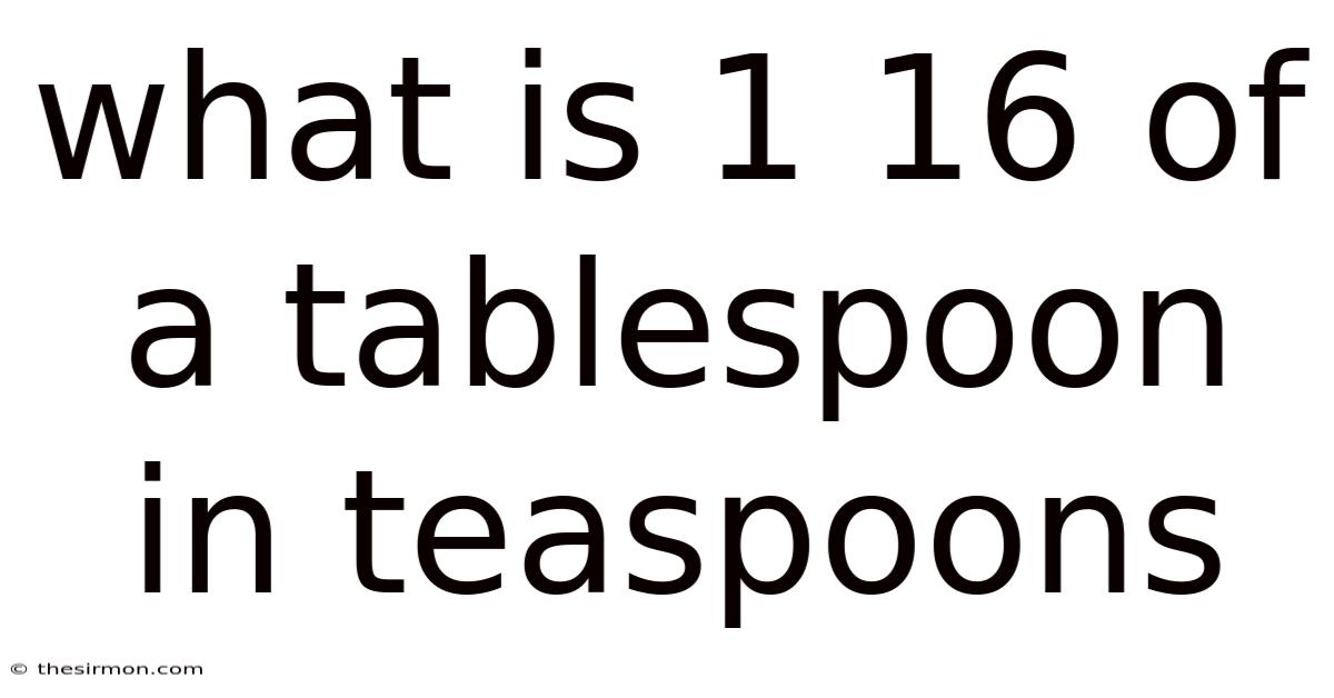 Understanding measurement conversions is essential for anyone who spends time in the kitchen, whether you're an experienced chef or just starting your culinary journey. And one common question that arises when following recipes is how to convert smaller measurements, specifically what is 1/16 of a tablespoon in teaspoons. This seemingly small fraction can make a significant difference in your cooking results, especially in baking where precision is crucial That alone is useful..