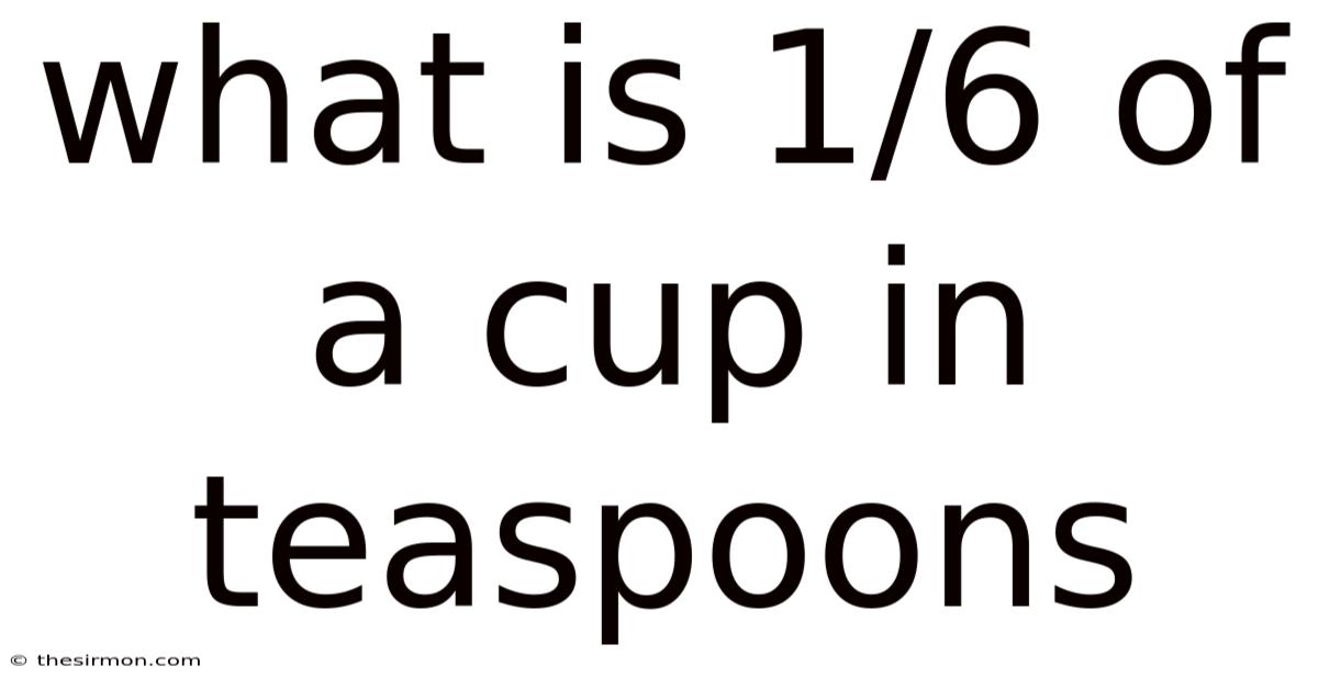 To find 1/6 of a cup, divide the total number of teaspoons in a cup by 6:- 48 teaspoons ÷ 6 = 8 teaspoons