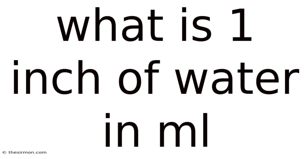 The question what is 1 inch of water in ml appears simple, yet it opens the door to a deeper exploration of measurement systems, unit conversions, and real-world applications. Now, understanding this conversion is essential in fields ranging from gardening and hydroponics to engineering and meteorology. Consider this: an inch of water refers to the height of a water column that exerts a specific pressure, while milliliters measure volume in the metric system. Also, bridging these units requires clarity on dimensions, context, and the physical meaning behind the numbers. This article will walk you through the definition, calculation method, practical implications, and common scenarios where this conversion becomes relevant.