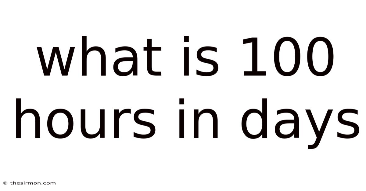 Time conversion is a fundamental skill that helps us handle daily life, from planning work schedules to coordinating travel itineraries. Worth adding: ** While the answer seems straightforward, understanding the process behind the conversion—and its practical applications—can be incredibly useful. One common question that arises in these contexts is: **What is 100 hours in days?Whether you’re managing a project, tracking sleep patterns, or planning a trip, knowing how to convert hours into days ensures accuracy and efficiency.