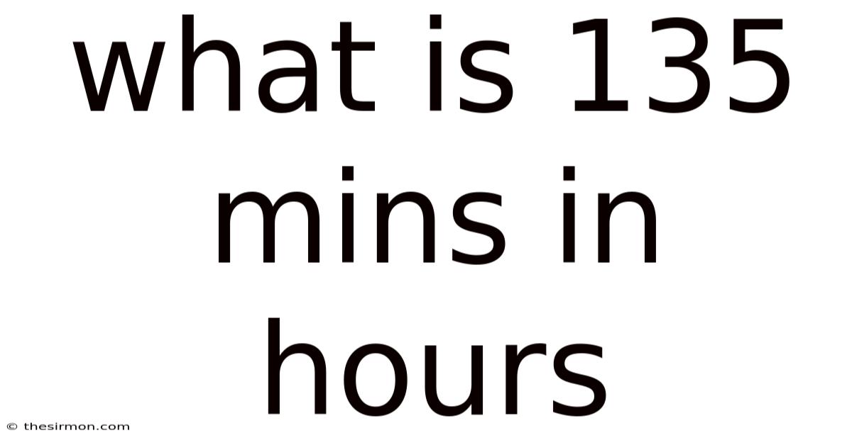 The bottom line: the seemingly simple question “what is 135 mins in hours?But ” reveals a deeper appreciation for the structure and utility of time. From personal scheduling to professional endeavors, the ability to accurately convert between time units is a valuable skill that enhances our organization, efficiency, and overall understanding of the world around us. By embracing these calculations and exploring the relationships between different time measurements, we gain a greater control over our lives and a more mindful approach to the precious resource of time It's one of those things that adds up..