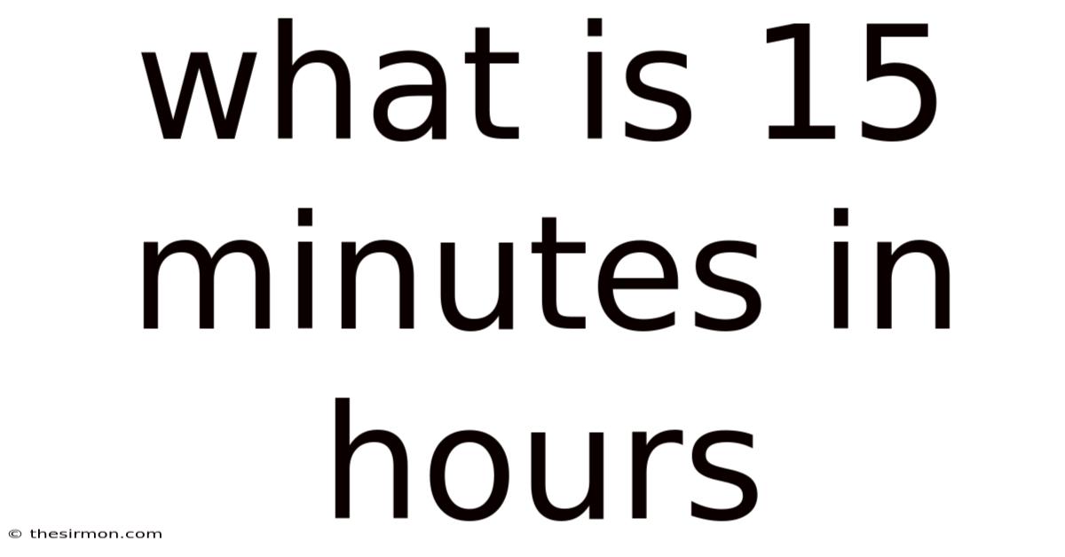 The answer to "what is 15 minutes in hours" is 0.25 hours or one-quarter of an hour. Worth adding: this simple conversion has far-reaching implications in our daily lives, from managing work schedules and billing clients to planning workouts and cooking meals. Understanding this relationship between minutes and hours is not just about performing a calculation – it's about developing a deeper appreciation for how we structure and perceive time.