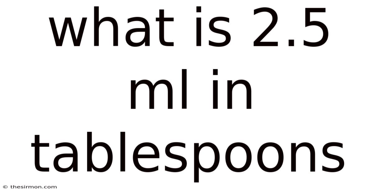 This table shows that 2.5 ml in tablespoons is approximately 0.169 tablespoons in the US system, or roughly one-sixth of a tablespoon Practical, not theoretical..
