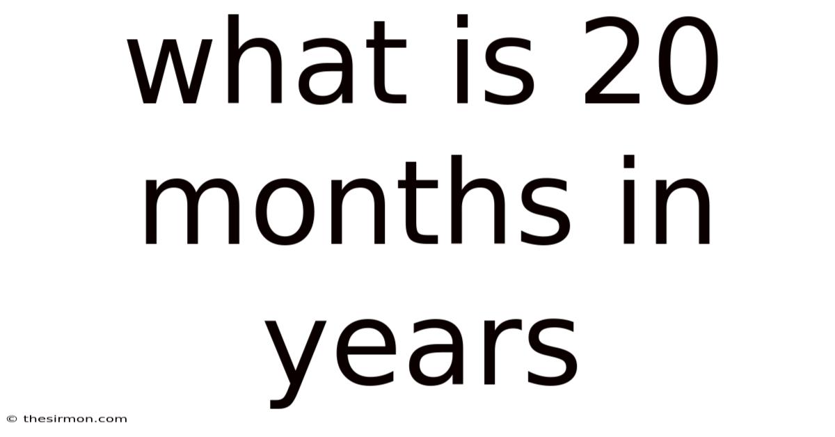 When you hear “20 months,” the first instinct is to think of it as a little less than two years. Now, converting months into years is a simple arithmetic task, but it often raises questions about how many weeks, days, or even hours are hidden inside that span. Understanding the conversion helps in budgeting, planning long‑term projects, calculating age, or simply satisfying everyday curiosity. In this article we will break down exactly what 20 months is in years, explore the math behind the conversion, discuss related time‑unit calculations, and answer the most common questions people have about this seemingly straightforward topic That's the part that actually makes a difference..