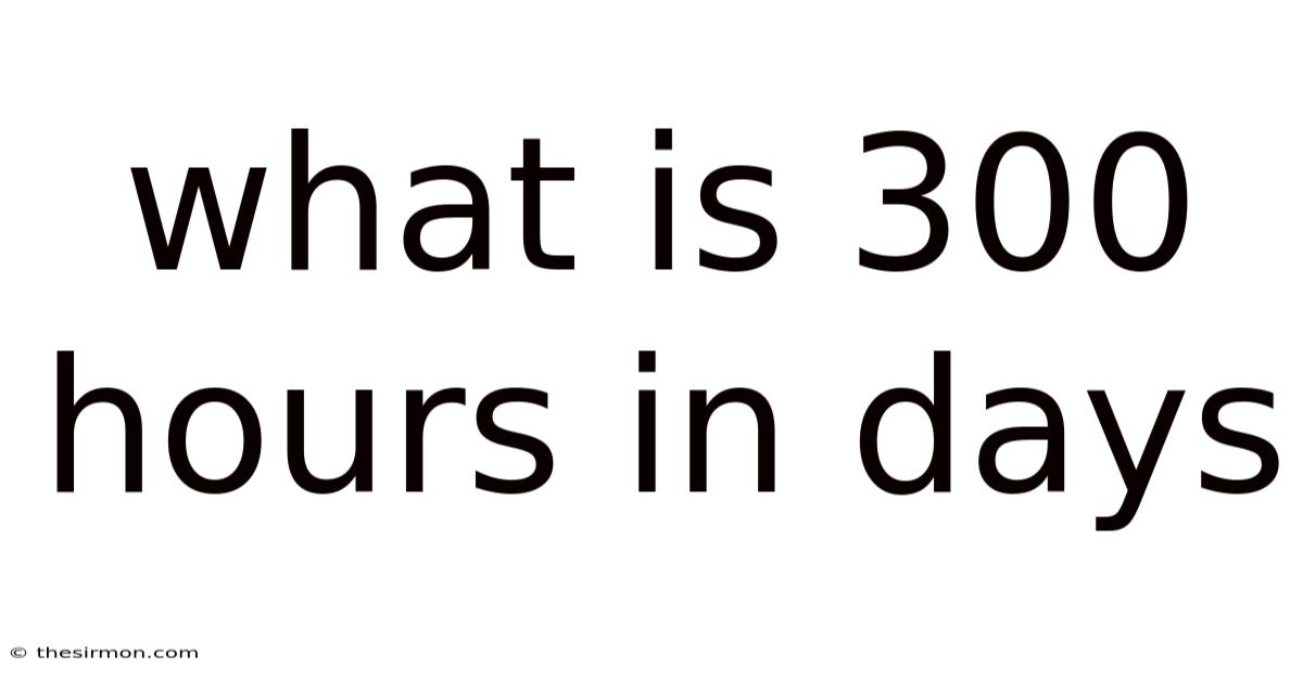 Understanding how to convert hours into days is a fundamental skill that proves useful in countless everyday situations. On top of that, whether you're planning a project timeline, calculating vacation days, or simply satisfying your curiosity, knowing exactly what 300 hours equals in days can help you better organize your schedule and manage your time effectively. In this thorough look, we'll explore not only the direct answer but also the mathematical principles behind time conversion and practical applications you might encounter.