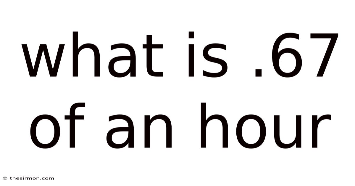 When you encounter the term ".Still, this decimal representation of time is a practical and widely used method in various fields, from payroll calculations to project management. 67 of an hour," it might seem like an abstract or confusing concept at first glance. Understanding what .67 of an hour, explain how to convert it into minutes, and explore its real-world applications. In this article, we’ll break down the meaning of .67 of an hour truly means can help you figure out time-related tasks with greater accuracy and confidence. Whether you’re a student, a professional, or simply someone curious about time management, this guide will equip you with the knowledge to handle decimal time effortlessly.
