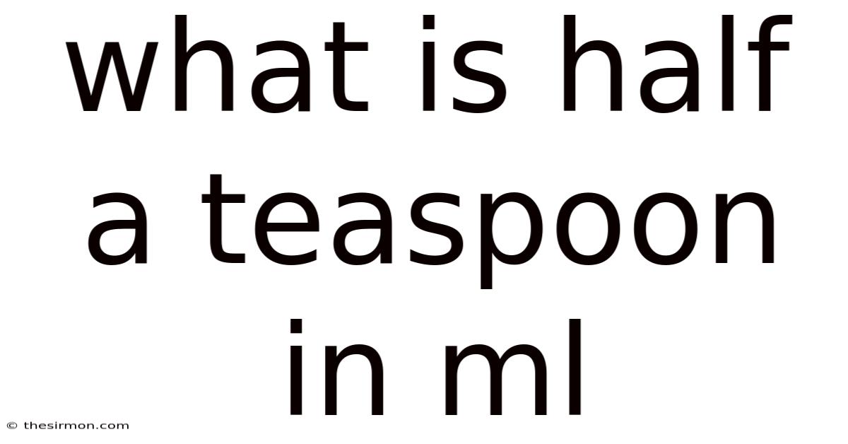 How many ml is half a teaspoon of salt? The same as any other ingredient: ~2.46 ml (US) or 2.5 ml (metric). Dry ingredients may have slightly different weights per ml, but the volume remains the same Turns out it matters..